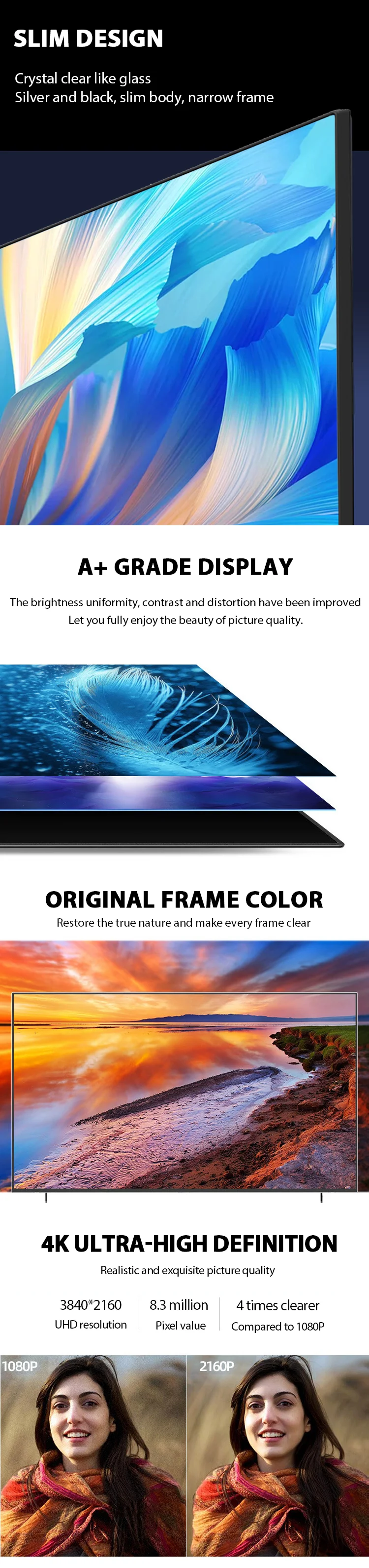 A TV digital T2 4K pode ser ligada a um host de computador como um monitor + TV digital AV, descodificador, antena parabólica + TV por cabo + interface HDMI de alta definição + filme USB, reprodução em loop de vídeos ou fotos em disco U