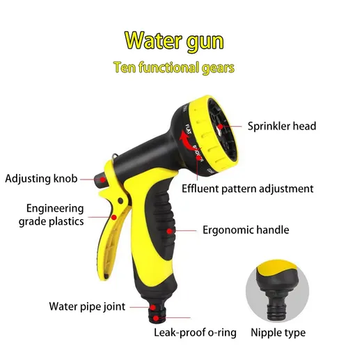 Pistola de água multifuncional, você pode alternar rapidamente o modo de descarga de água quando desejar.